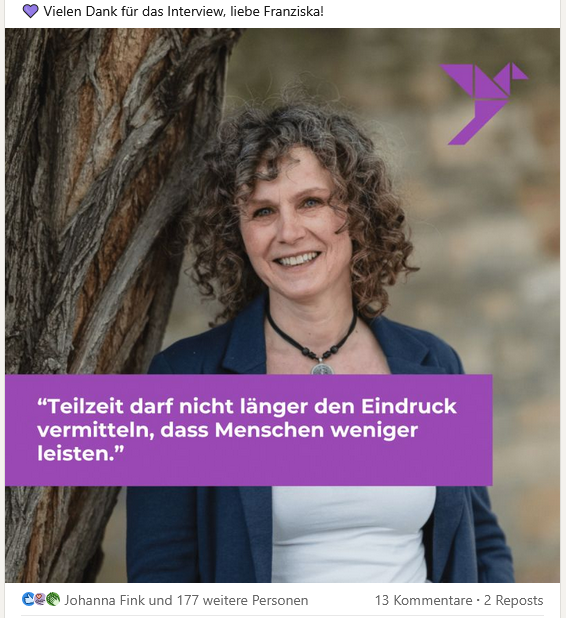 Auf LinkedIn wollten wir neben unserer Kampagne auch eine Bühne für unser Thema Karriere und Arbeiten in Teilzeit bereiten.